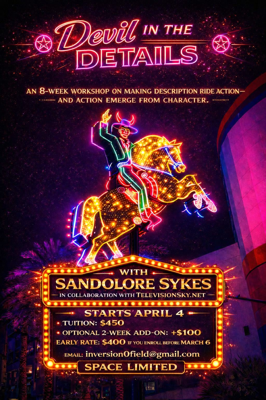 In Devil in the Details, we work on the mechanics of consequence — how character generates action, how detail carries consequence, and how suspense emerges from inevitability rather than spectacle.